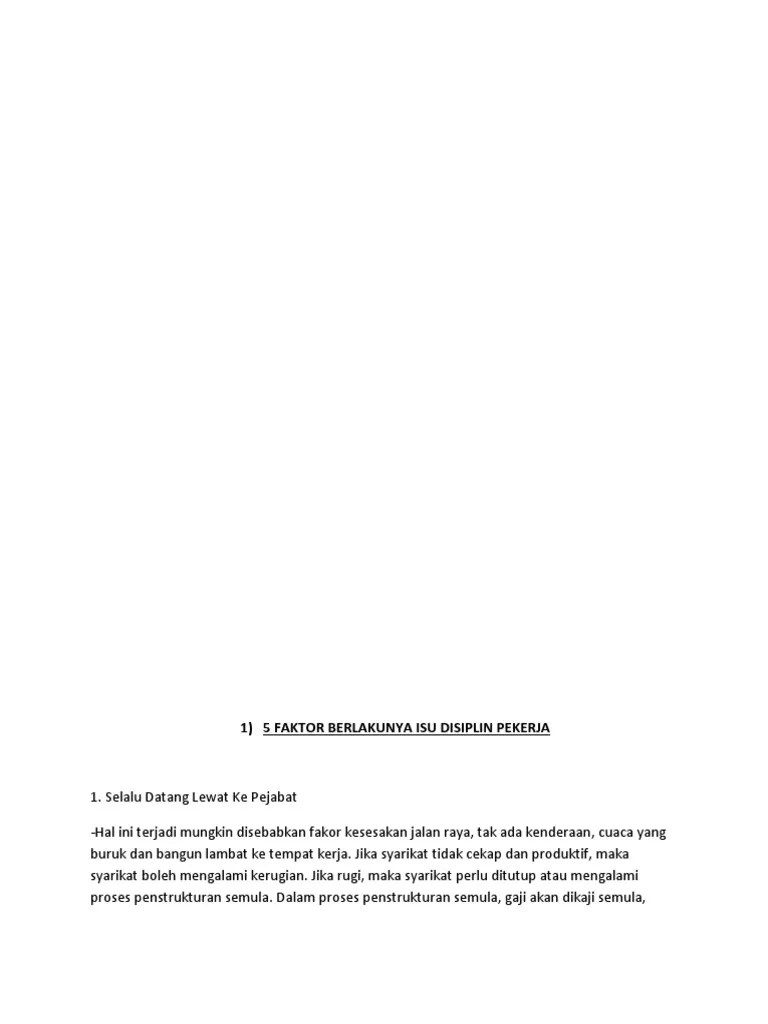 Karangan Faktor Berlakunya Isu Disiplin Pekerja - Contoh Karangan